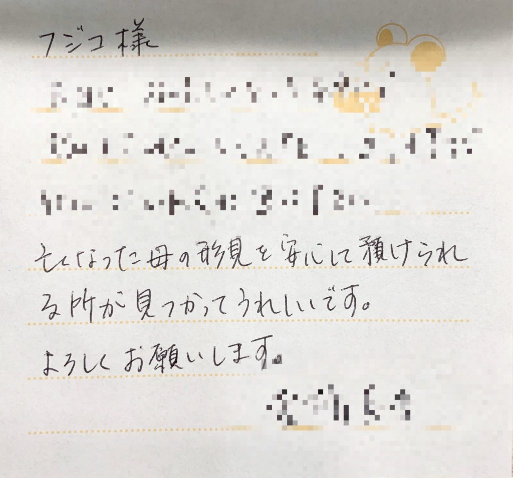 想像以上の仕上がりでたいへん感激しています。義母の遺品でしたので息子の嫁にキレイな状態で渡したいと思いお願いした次第です。