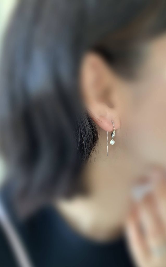 アメリカンチェーンタイプのピアスは、どの角度からもパーツがきれいに見えるのでおすすめです。