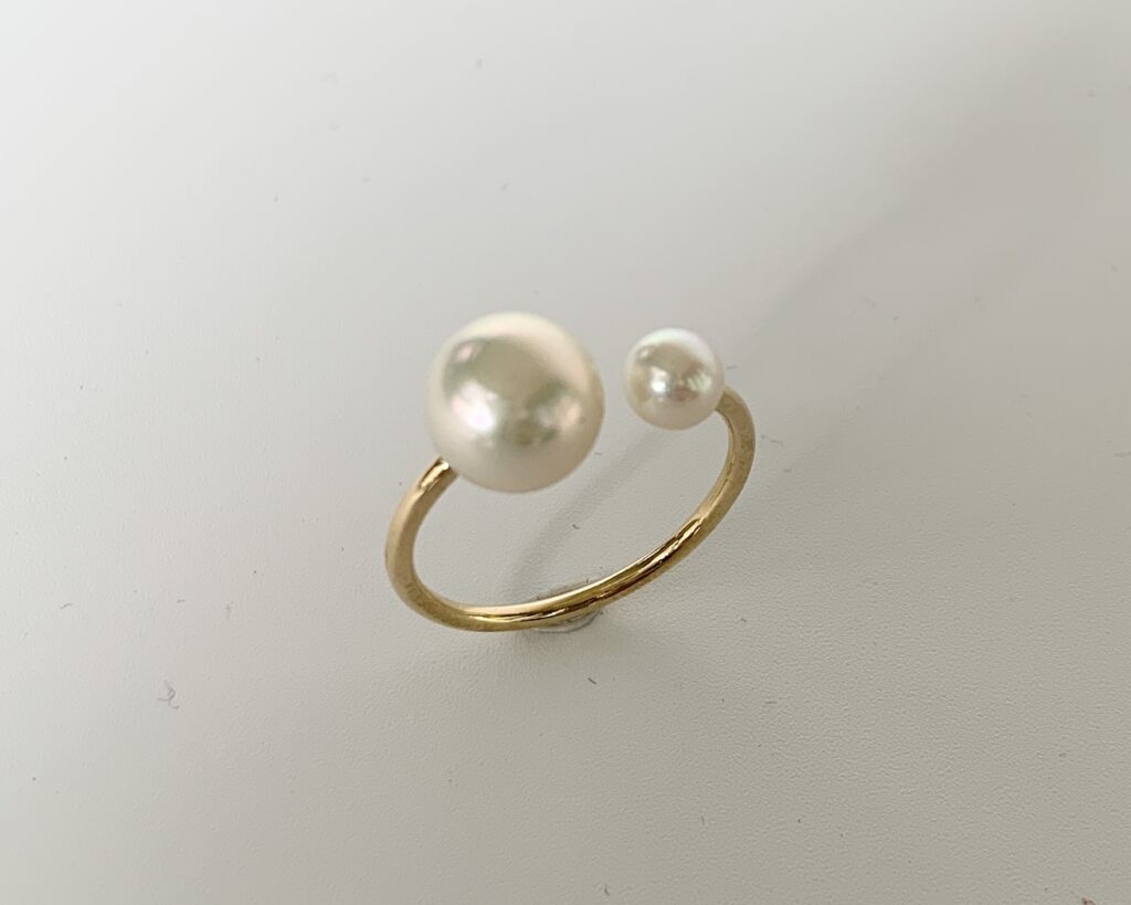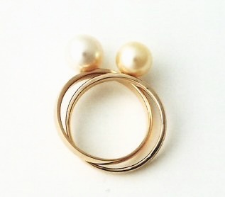 アコヤ真珠ホワイト&ゴールド 2連リング | 名古屋・本山のジュエリーリフォーム&オーダーメイド|カスタムメイドジュエリーフジコ