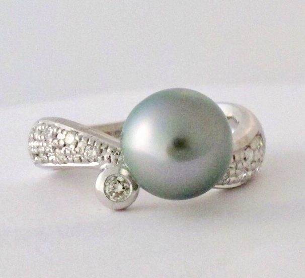 黒蝶真珠ブルーグレー ひねりリング | 名古屋・本山のジュエリーリフォーム&オーダーメイド|カスタムメイドジュエリーフジコ