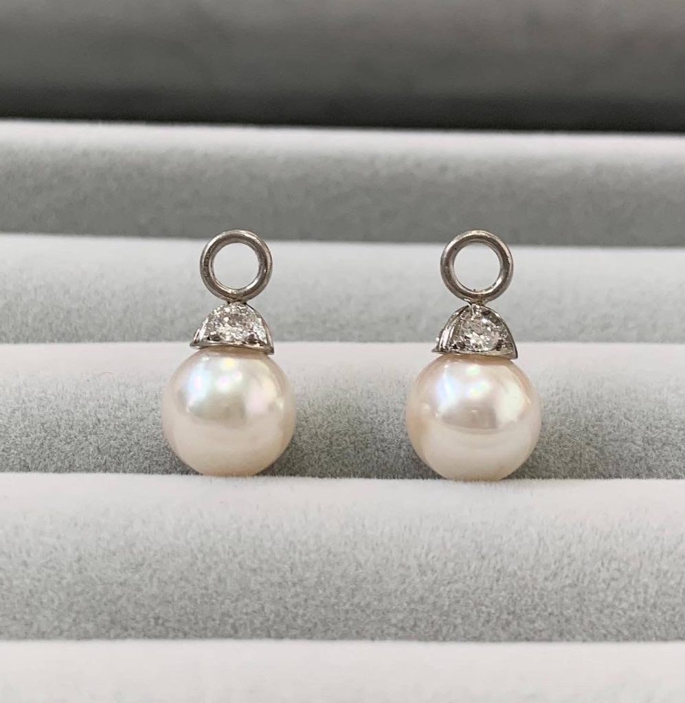 パールのサイズは7.5mmなので傘パーツはとても小さいものです。メレダイアは全方向から見えるように彫り留めされます。