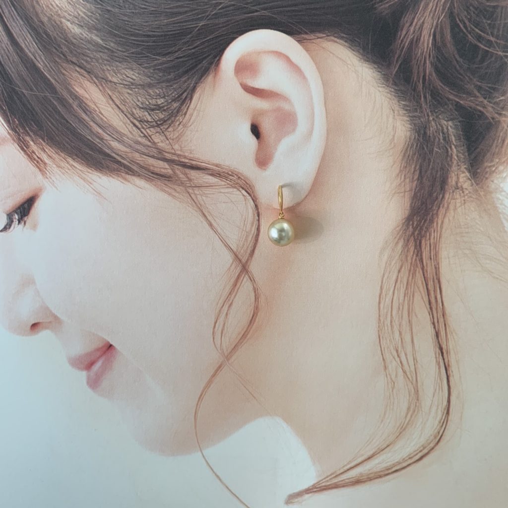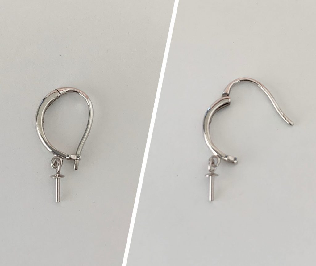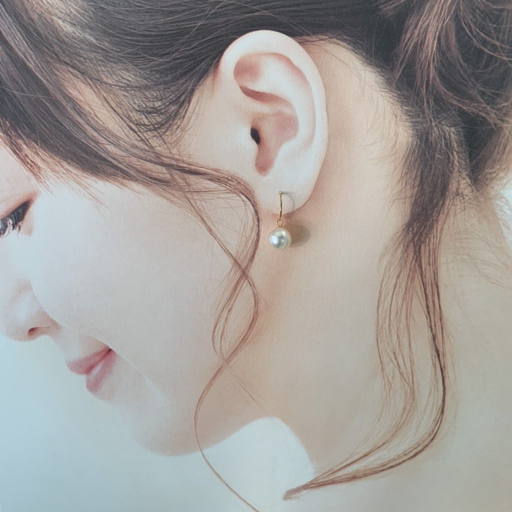 バネ入りのフックタイプはつけやすく丈夫でピアスが外れる心配のないキャッチレスのピアス金具です。高級感があるので小さめから大きめ真珠までワンランク上の真珠に。