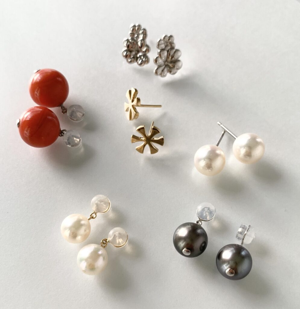 そのままケースにしまっておくのももちろん良いですが、ピアスキャッチにリメイク することで、日常のコーディネートで手軽に活用することができます。