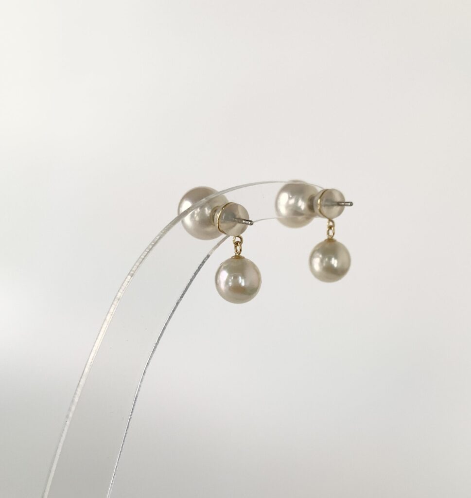 ネックレスのサイズ直しで余ったパールは、保管しておくよりも ピアスキャッチにリメイク すると便利で実用的です。