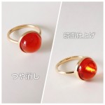 石の底辺がいびつであったり、ガードルに欠けがあったりなどの難ありでしたが、石の丸い形に合わせて周りにぐるりとダイアモンドを足して取り巻きスタイルのデザインに。今をときめくリングになりました。
