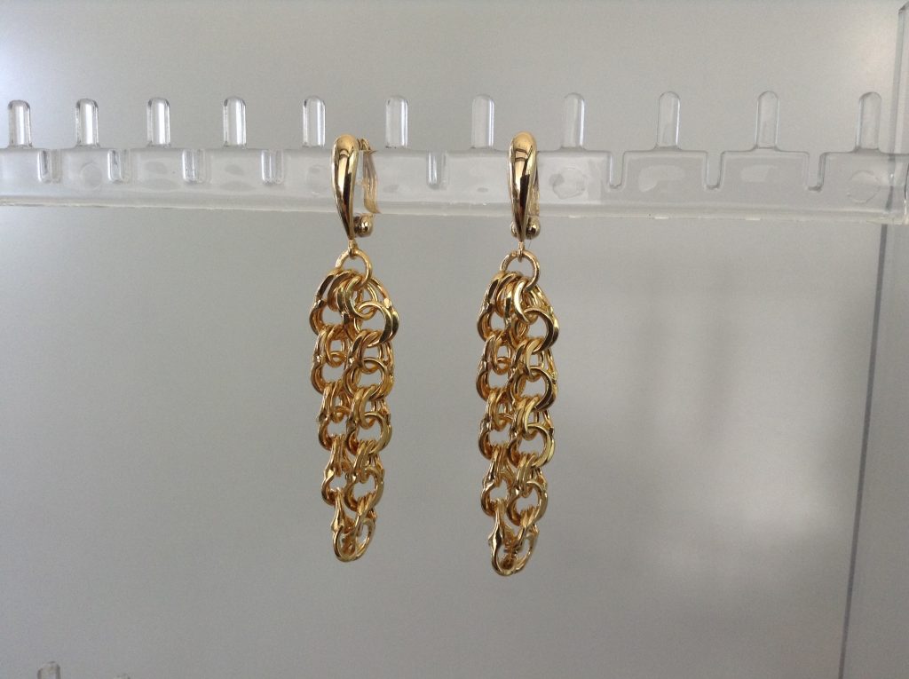 チェーンタイプのため、今回はブレスレットを切り分けてイアリングとリングにリモデルすることに。イアリングには「ピアリング」という、付け心地を微調整できて痛くなりにくい特許商品を使用しています。360℃どの角度から見てもピアスのように見え、小さく軽量なのにしっかり留まり、痛みもなく、とても洗練された高機能なアイテムです。